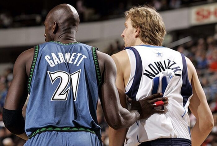 除开邓肯之外,字母哥貌似能和历史上任何大前锋掰手腕。诺维茨基拿过1次总冠军,夺得过1届常规赛MVP,1届总决赛MVP。他14次入选全明星,12次最佳阵容;加内特获得过1次总冠军,拿过1次常规赛MVP,还获得过1届最佳防守球员奖。他15次入选全明星,9次入选最佳阵容,12次入选最佳防守阵容。他们二人相比字母哥,在现阶段的荣誉不相上下,但是字母哥还年轻,还会继续争取荣誉。