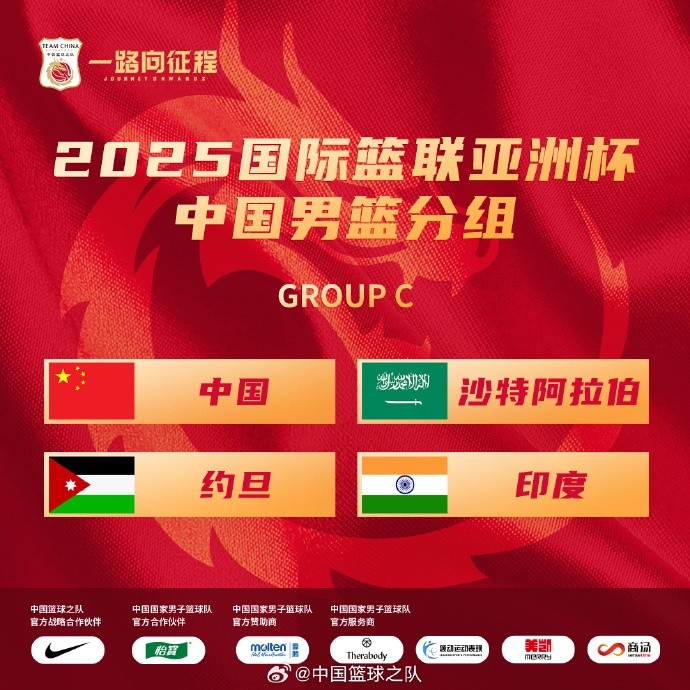 4月8日讯 2025男篮亚洲杯分组抽签结果今天出炉,中国男篮和沙特、约旦、印度同组。