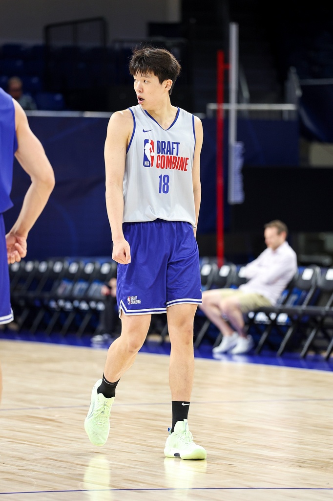 在今年NBA选秀联合试训第一场5v5对抗赛中,杨瀚森登场19分钟7投5中,三分3中1、1罚1中,得到12分1篮板(前场板)2助攻1盖帽,仅1次失误,得分并列队内第三高。而第二场5v5对抗赛,杨瀚森上阵18分钟,4投3中,7罚5中,拿下11分6篮板(3个前场板)6助攻1盖帽的全面数据,出现3次失误。