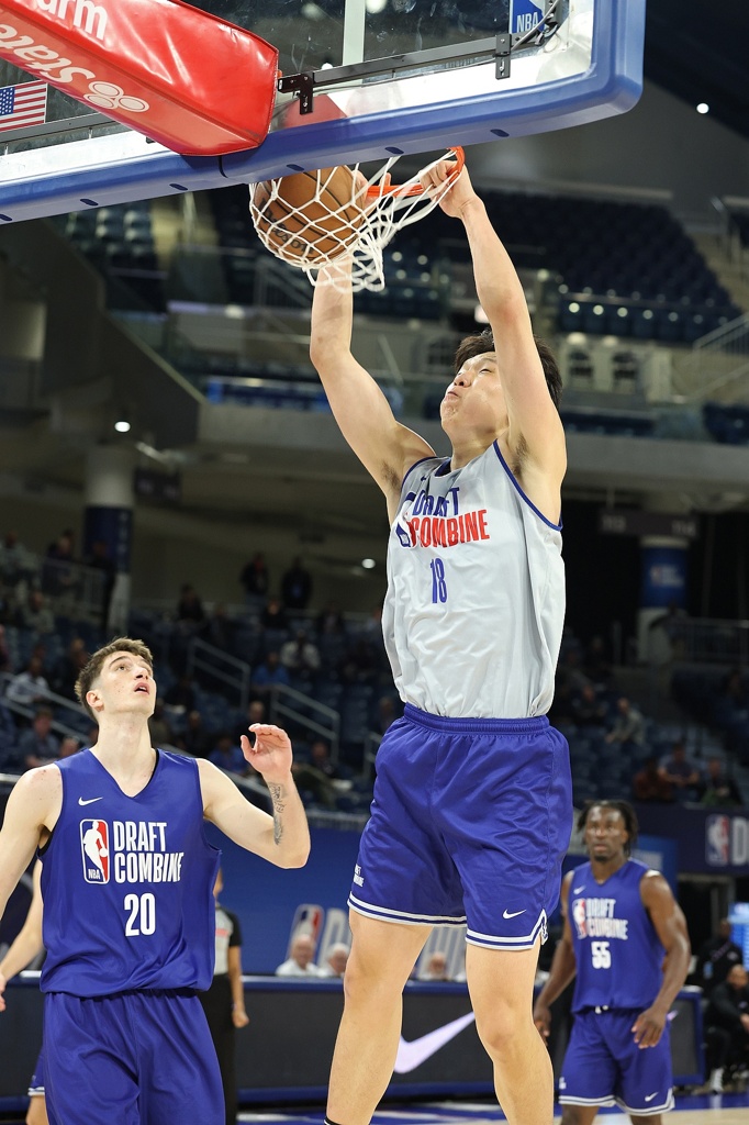 即使三人中有两人回归,增加中锋位置的深度也不是一个坏主意。 尽管杨瀚森没有像其他新秀那样受到广泛关注,但他依然具备出色的篮球能力,并且他的比赛风格非常吸引人。他最突出的能力是传球。这位身高七英尺一英寸的大个子拥有出色的视野和愿意传球的态度。他经常能够在低位为队友创造机会,善于利用无球跑动者的切入,并且在中国国家队中也担任过进攻核心。