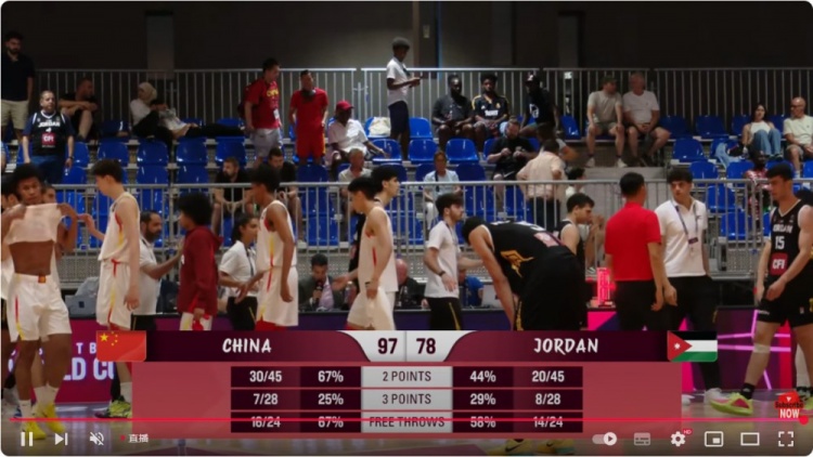 7月5日讯 U19男篮世界杯13-16名排位赛,中国队对阵约旦队。