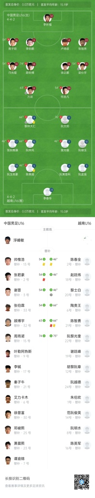 全场比赛结束,中国国少队2-2战平越南U16队。