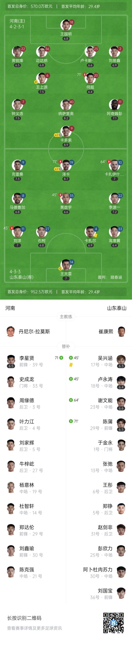 第50分钟,河南扳回一城!刘易鑫左路下底传到门前卡多索头球破门,随后裁判吹罚越位在先进球无效,然后var提示没有越位进球有效,河南1-2山东泰山。↓